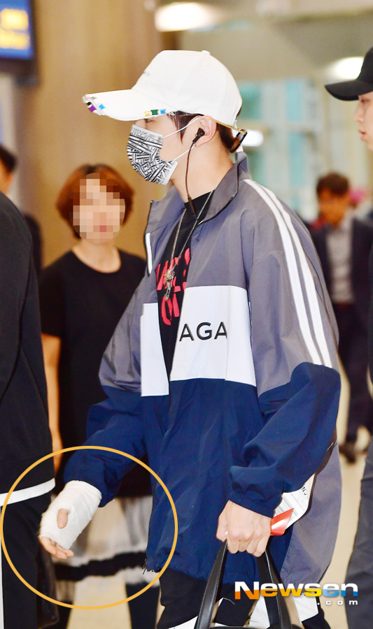 Kang Daniel right hand injury 'Bandage wrapped and somber Entrance' on April 26, 2018 On this day Kang Daniel rolled a bandage on his right hand and walked out in the Entrance chapter