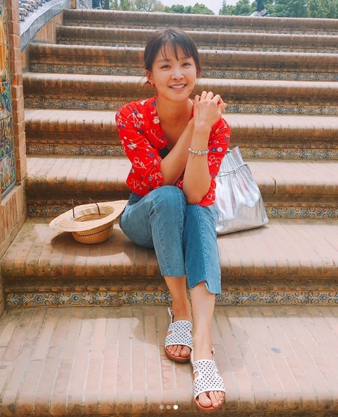 Inside the picture was a picture of Lee Si-young enjoying the sunshine of Seville, who styled herself in a red floral shirt and jeans. Lee Si-young's smile, brighter than the sunshine, is attractive.