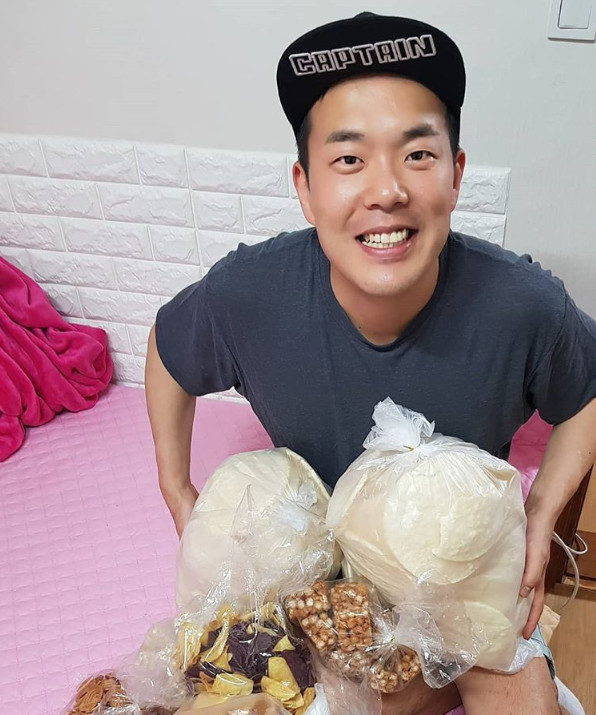 Hong Yoon Hwa posted two photos on his instagram on May 27 with an article entitled "I got a soul and suddenly bought a lot of Puffed."