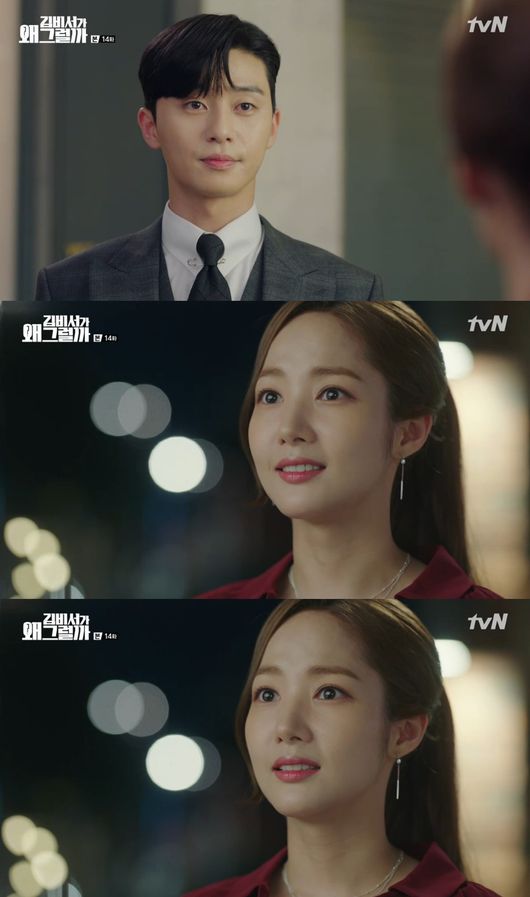 Lee Youngjun (Park Seo-joon) proposed to Park Min-young in the TVN drama Why Secretary Kim Will Do It (playplayed by Baek Sun-woo, Choi Bo-rim, directed by Park Joon-hwa) broadcast on the 19th, raising the audience's excitement index.