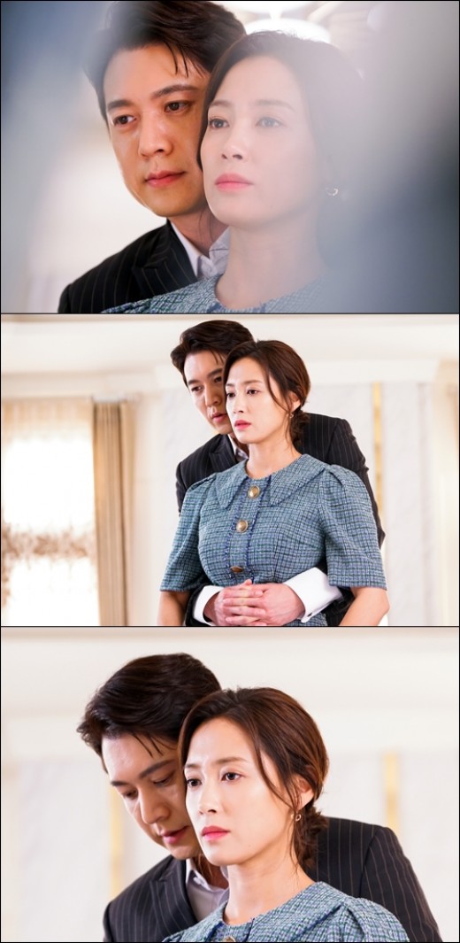 The photo released by the production team shows Kang Chan-ki, who is Back Hug, his wife Ji Eun-han. Kang Chan-ki, who saw the silver ceiling cleaning the floor with a cleaner, sits behind the silver ceiling as if he is too lovely to bear, and the silver lining reacts to his sudden affection. She looks like she has no affection left.