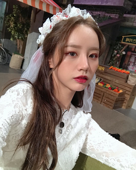 Hyeri in the photo is staring at the camera with a faceless face, transforming into a Phantom bride in the 'amazing Saturday' Halloween feature. Wearing a veiled dress in her sheer white, Hyeri drew Eye-catching to show off her beauty, evoking an exotic vibe.