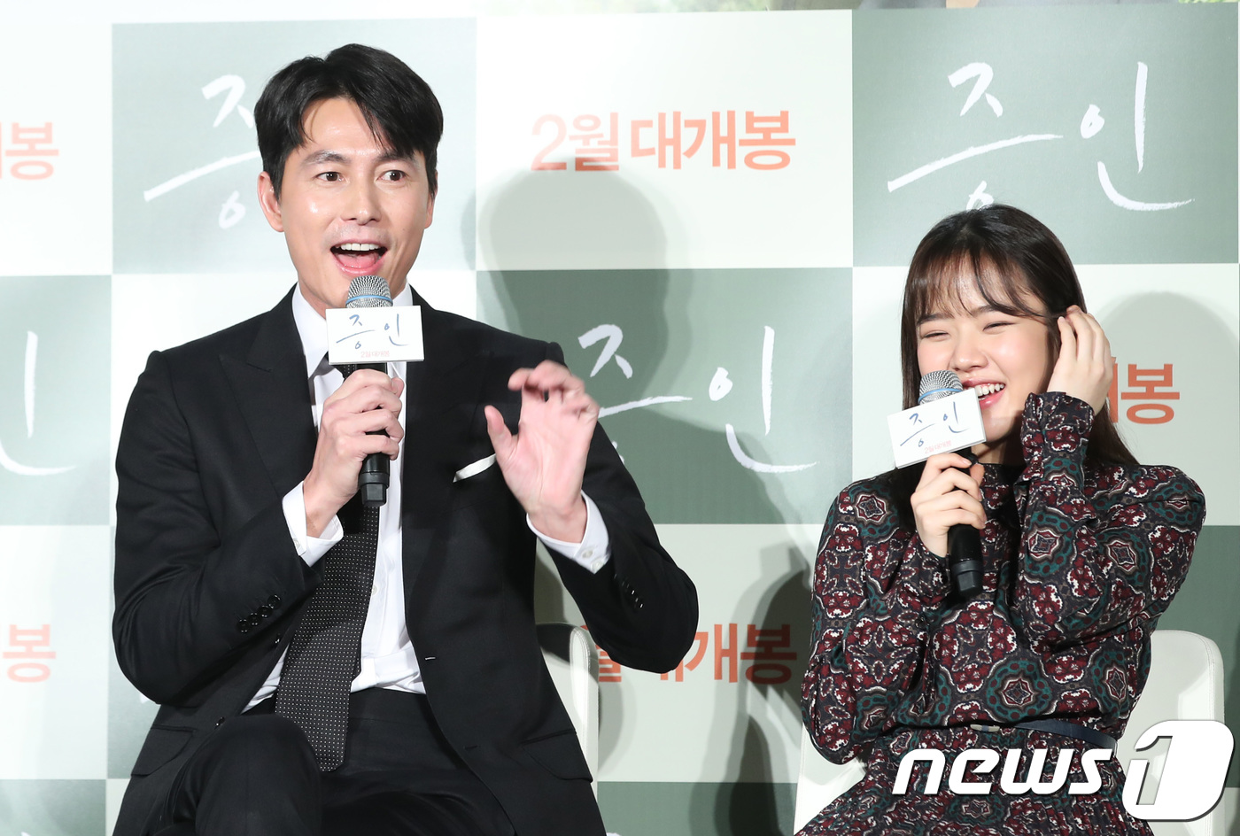 Seoul=) = Actor Jung Woo-sung (left) attends a production report of the movie Witness (director Lee Han) at the entrance of Lotte Cinema Counter in Gwangjin-gu, Seoul on the 10th and talks about his meeting with Kim Hyung Gi.