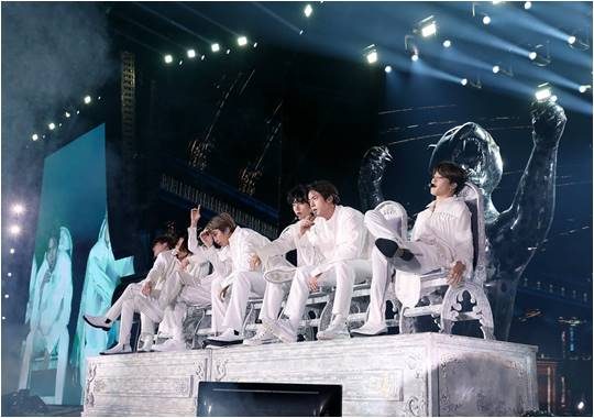 group BTS (BTS) held its world tour Love yourself: Speak yourself at 7:30 p.m. on the 11th (local time) at The International AT & T Stadium (King Fahd International Stadium, hereinafter Riyad AT & T Stadium) in Saudi Arabia RSELF: SPEAK yourself is singing Dionysus.