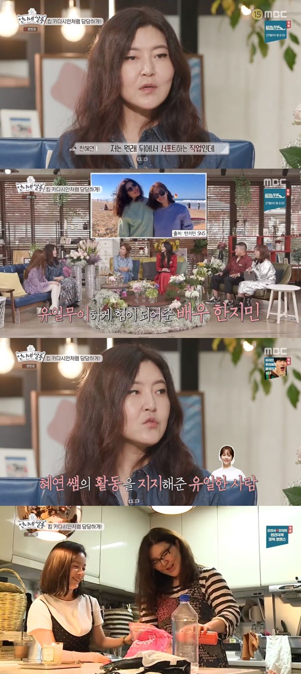 On this day, MC Han Hye-yeon explained the relationship that gave him great strength. "I was originally a support job behind the scenes, and people were wondering and starting to be seen by them, and I was worried, 'Is it right that I do this?'" he said.