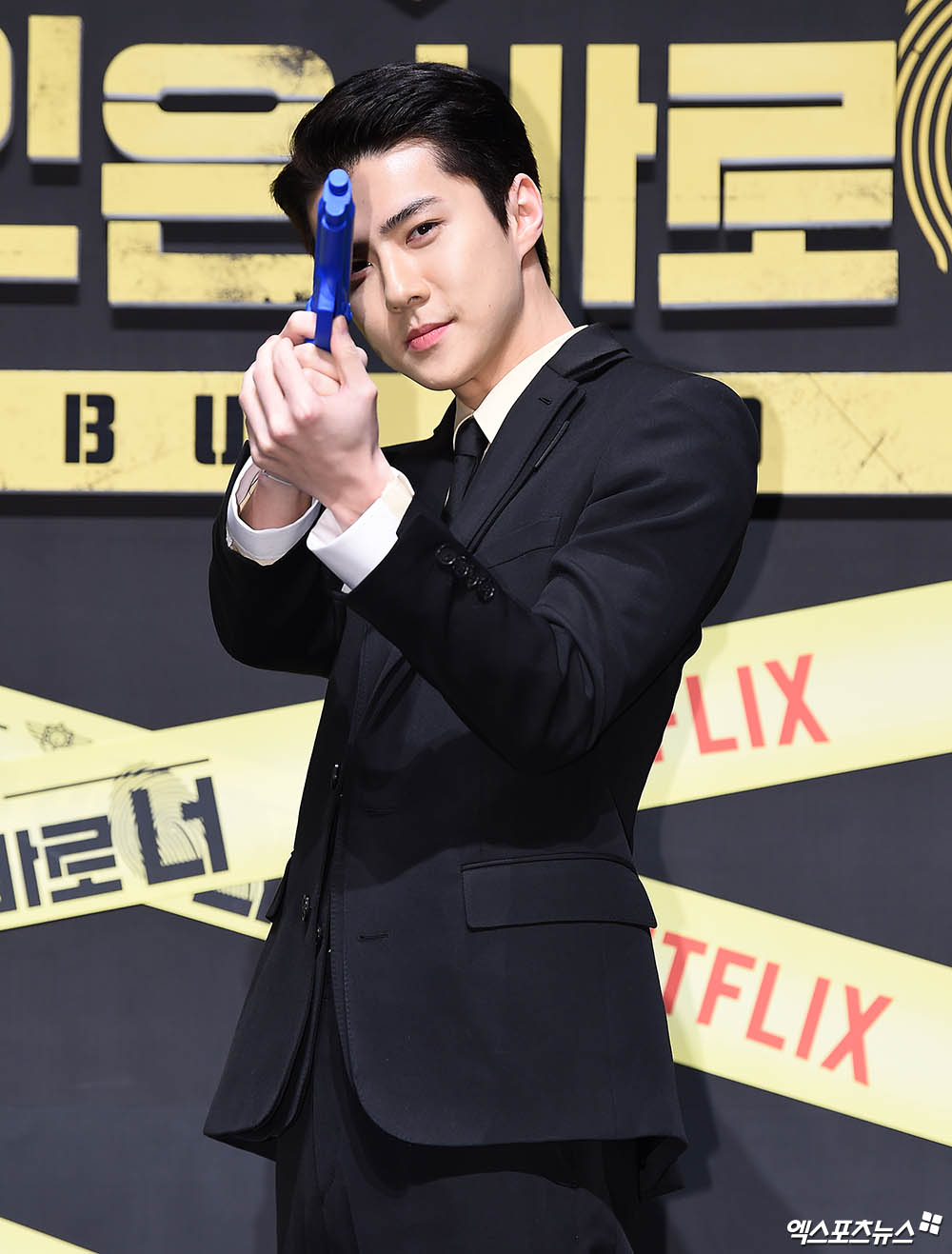 EXO Sehun 'All Kill in Eyes' on November 09, 2019 The Netflix original series 'You are the perpetrator!' At the Seoul Sinsa-dong, Gangnam CGV Apgujeong store on the 8th. EXO Sehun, who attended the Season 2 production presentation, has photo time.
