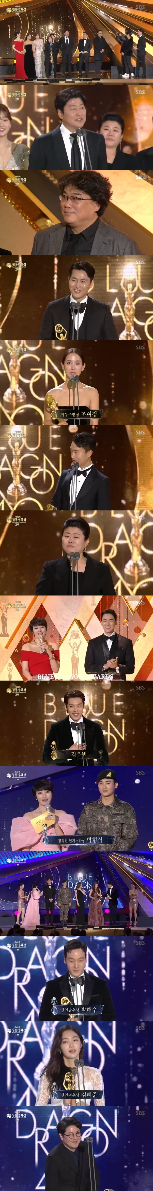 Honors.Jung Woo-sung and Cho Yeo-jeong for Best Actor The 40th Blue Dragon Film Awards ceremony was held at Paradise City, Incheon on the afternoon of the 21st. Actor Kim Hye-joon and Hyun-suk were in charge of the project, and Bong Joon-ho's "parasite" took five trophies, including Best Picture, Best Director, Best Actress, Best Supporting Actress and Art Award.