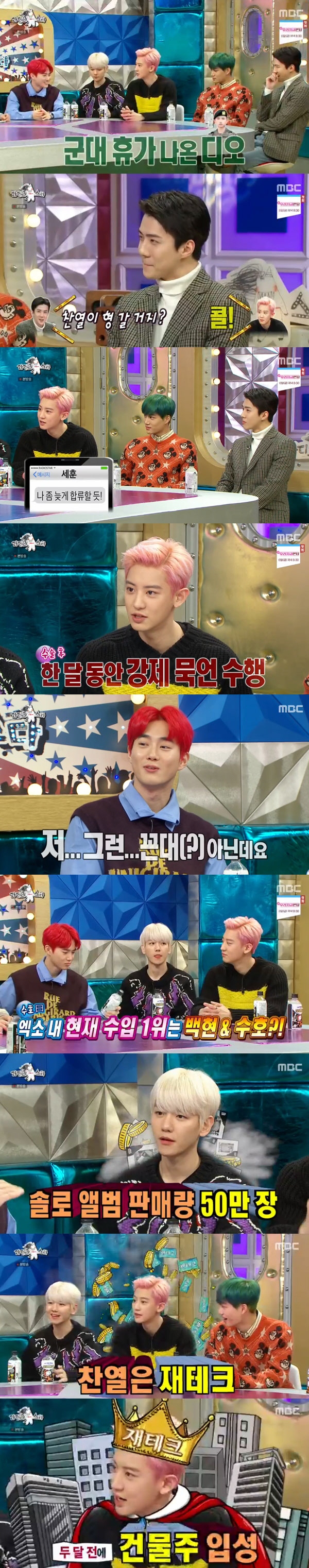 MBC Radio Star', a high-quality talk show broadcast on the last 4 days, attracted attention with EXO Suho, Baekhyun, Chanyeol, Kai, Sehun and Chen as a special feature of 'EXOcle Radio Star'.