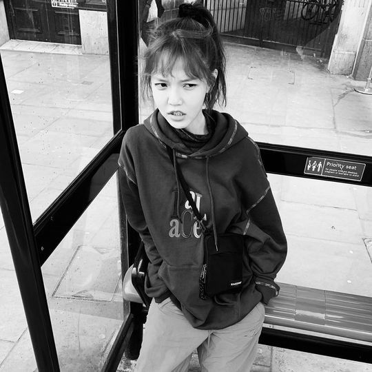 Inside the picture was a picture of Jimin in a hooded T-shirt, who is making a pointed look. Jimin's disappearing small face size and a distinctive feature that fills his face make his beauty more prominent.