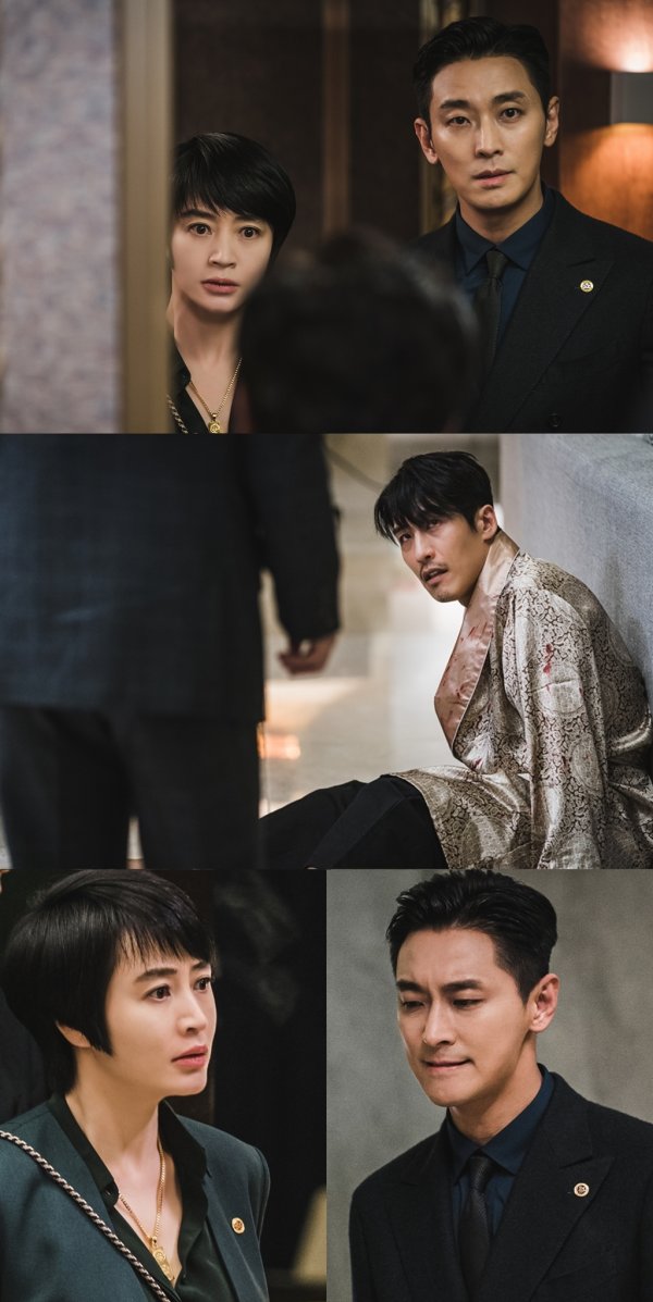 Jung Geum-ja and Yoon Hee-jae in the public photos are looking surprised because of the sprawling Ha Chan-ho, who is not in his mind. Ha Chan-ho, who had been living in alcohol and medicine earlier, reunited with his wife, Seo Jung-hwa (Lee Joo-yeon), and found stability. It was Ha Chan-ho, who became a successor to the Isium Group again with his good appearance, so the appearance of the collapsed Ha Chan-ho is even more shocking.