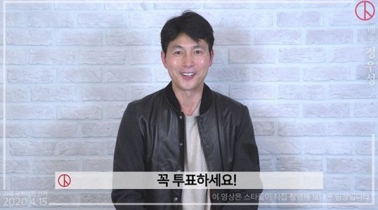 Jung Woo-sung said, "What kind of Korea do you want? Want to create a country like that where children and senior citizens who can live healthy and safe have a chance for everyone happy? Voting, April 15. I’m going to pick the representative I want, be sure to Voting!”