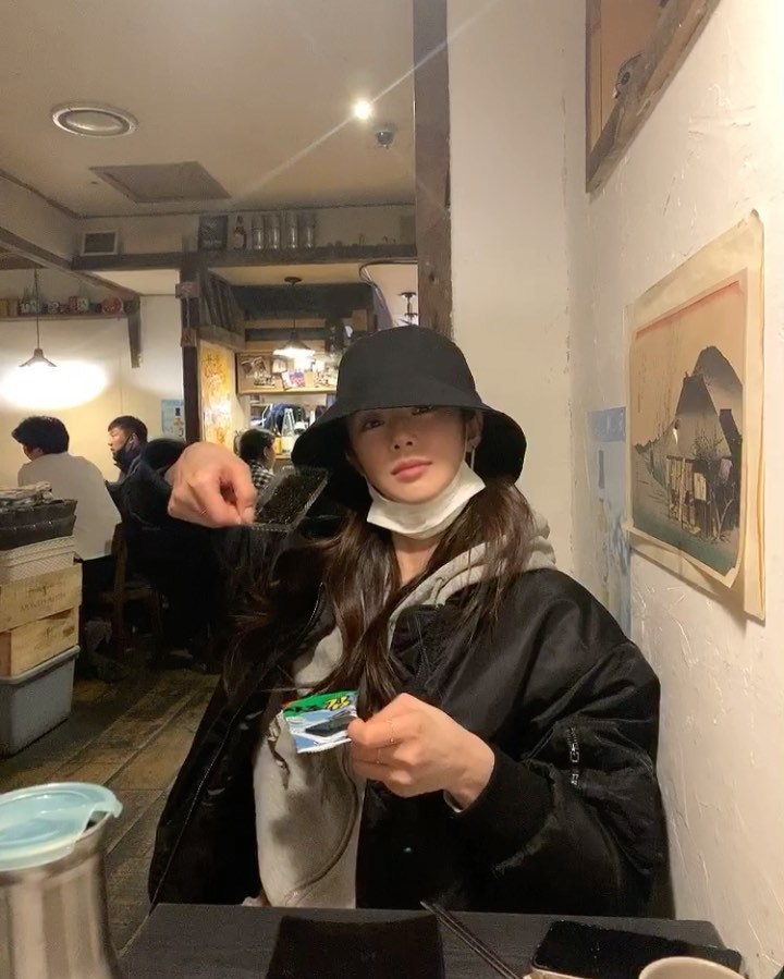 Also, Lee Ju-bin wears a Mask with a black bungee hat tucked down; Lee Ju-bin's small face makes the proportions even more pronounced.