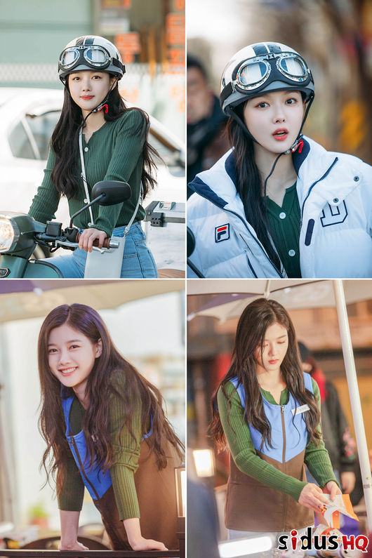 The photo released is the scene of the drama Convenience store morning star, sitting steadily on the Scooter during the day and looking at the camera, while Kim Yoo-jung's busy Twenty Four Hours, who is working hard from the Scooter Way to work to the late night, It is contained.