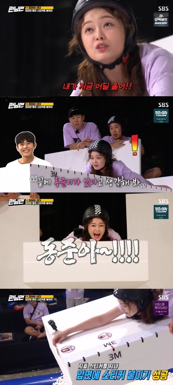 The members teased that Jeon So-min was crying, and Jeon So-min was laughing, saying "I do not cry." When Jeon So-min failed to move, Yoo Jae-Suk said, "Think there is Dong Jun at the end." So, Jeon So-min said, "Dong Jun-a. I am going to my sister, "he said, and succeeded in attaching stickers.