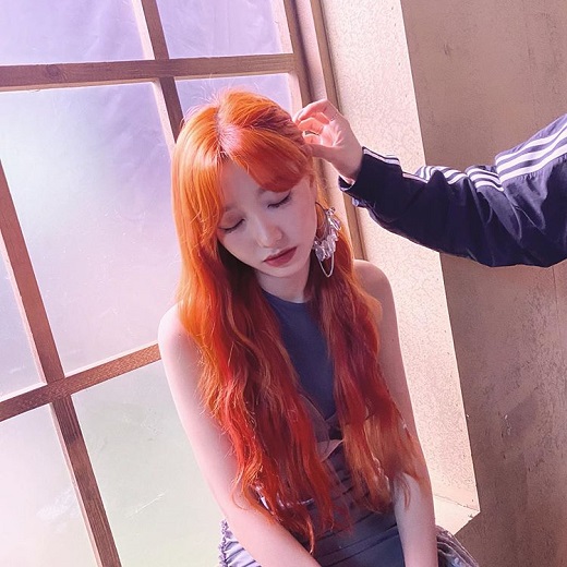 The photo shows Ryu Su-jeong sitting at the window and holding his eyes. He transformed into an orange hair and captivated his fan with his fresher beauty.