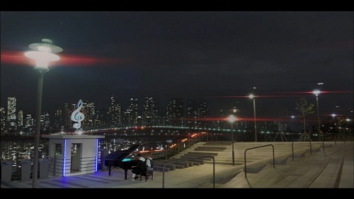 The night view of the West Sea flowing along the park filmed by the drone and the beautiful lighting of the Hannum Bridge made the atmosphere of the drama beautiful.