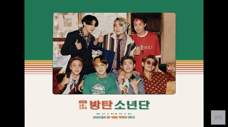 bts agency Big Hit Entertainment released a preview video for the 2021 season gritting titled '[PREVIEW] bts (bts) '2021 SEASON'S GREETINGS' SPOT (bts GOES retro)' on the official YouTube channel of bts on November 10.