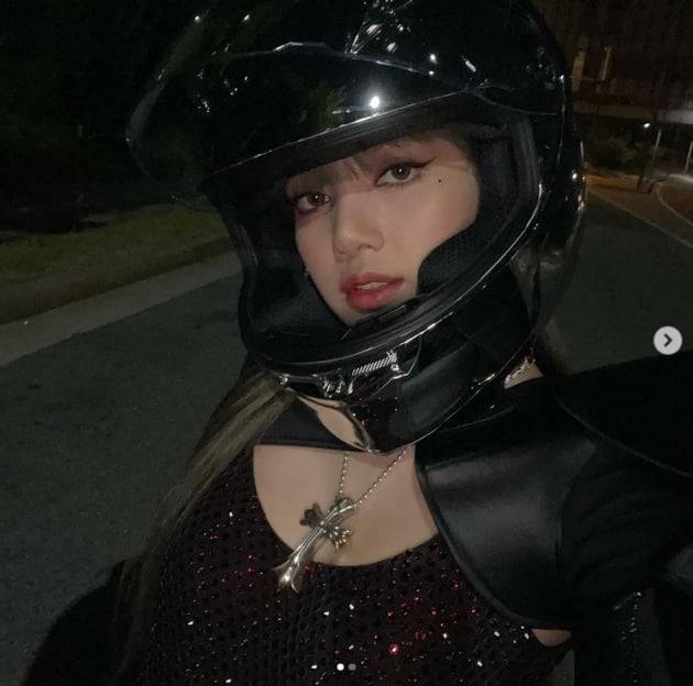 Lisa in the public photo showed off her charisma with her sexy eyes wearing a black helmet.