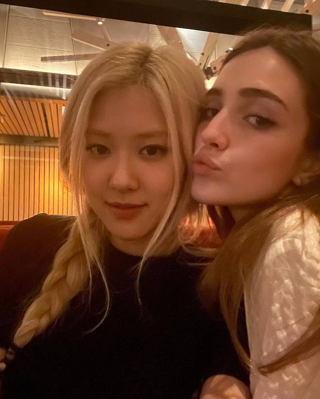 In the open photo, Rosé is taking a self-portrait with actor Talia Ryder, and then certified to watch the Broadway musical "Hadestown".