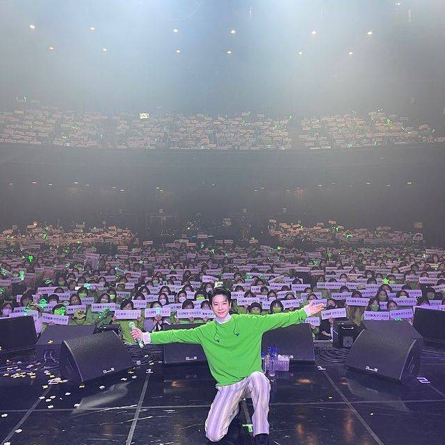 Jung Dong-won in the public photo poses with his arms wide open on the Concert stage. Many fans who have visited the Concert are captivating.