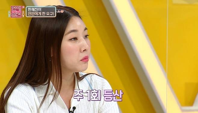 "I think it's an Exercise," Han Hye-jin said in a peripheral response, "I asked One Week to go hiking once, or take a cycle together."