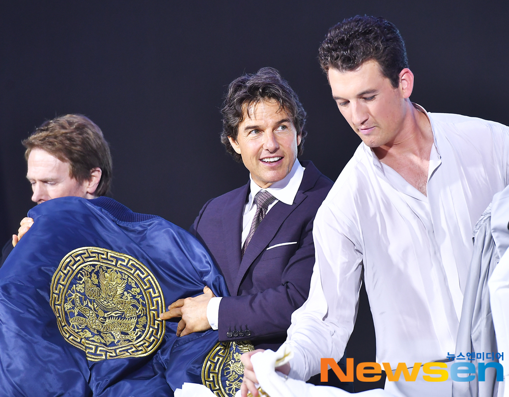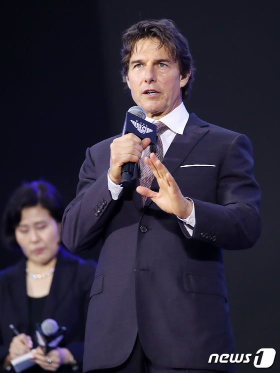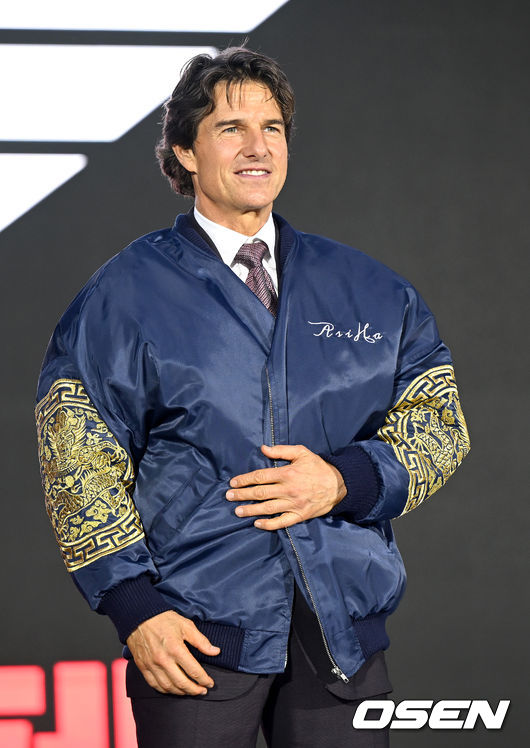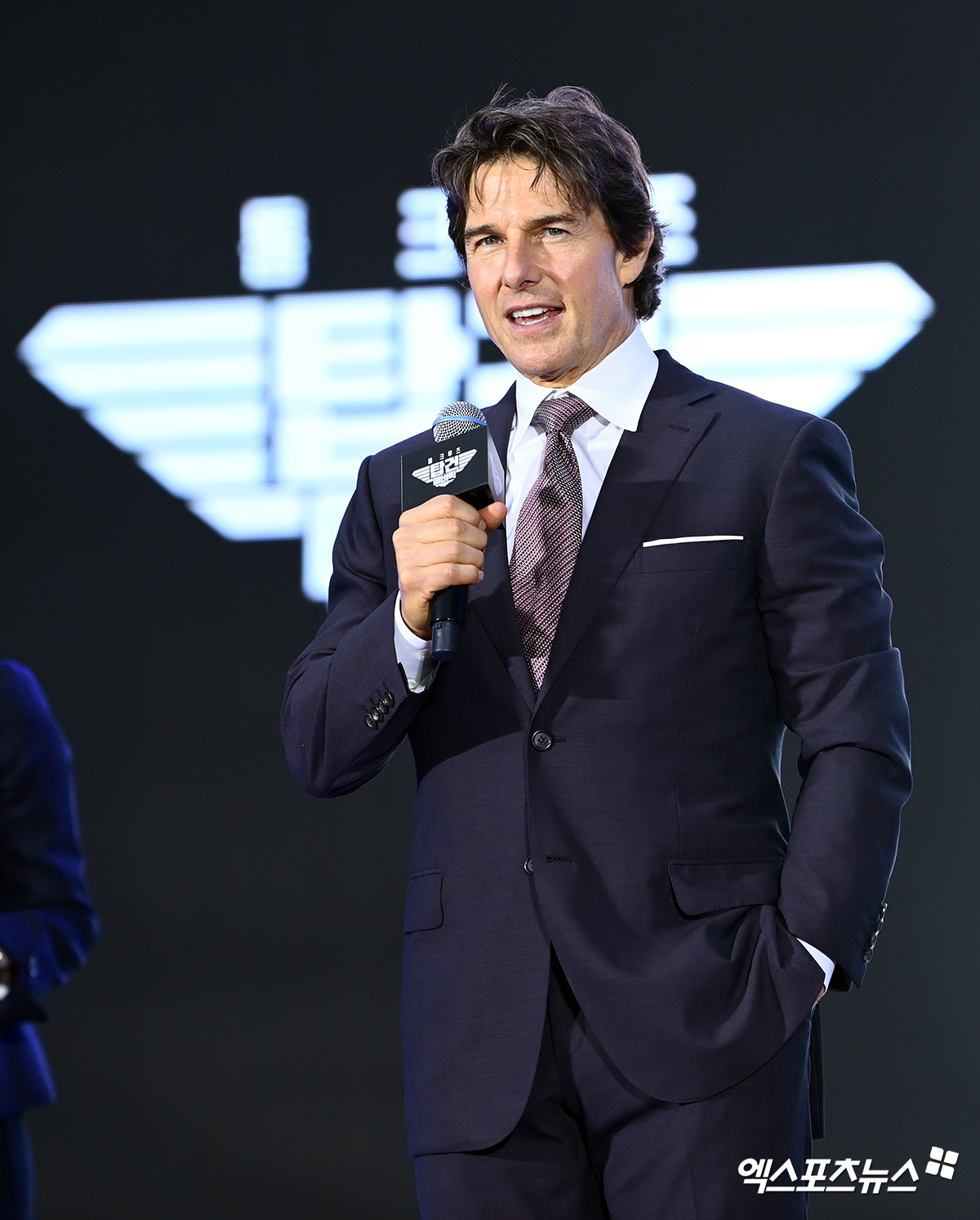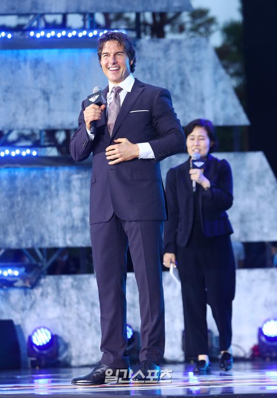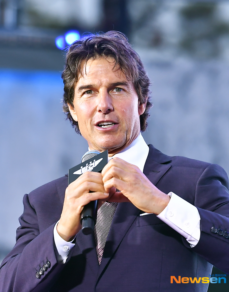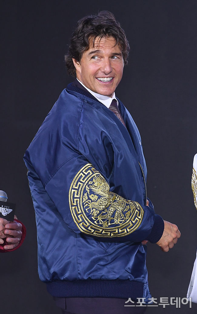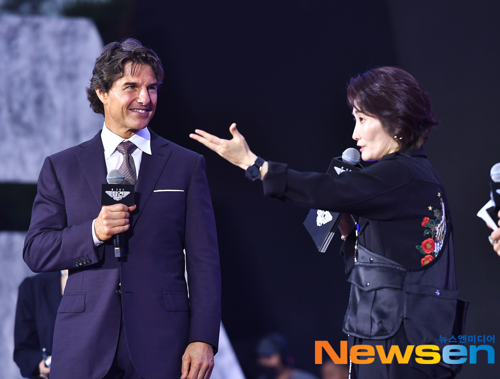 Hollywood actor Tom Cruise attended the red carpet event for the movie 'Top Gun: Maverick' held at the Lotte World Tower outdoor plaza in Jamsil, Seoul on the afternoon of the 19th.