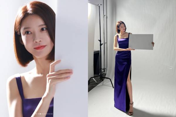 In the open photo, Cha Ye-ryun showed off her sexy legs wearing a purple long-open sleeveless dress. He wore a single-headed style, revealing a long neckline and a hollow clavicle line, which made him realize he was missing 4kg.