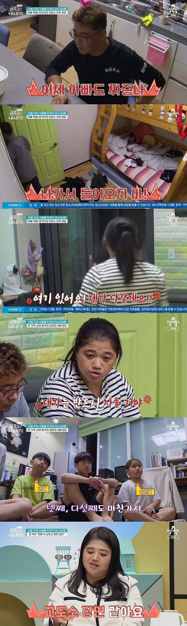 I could not control my anger, so I came up with a gold piece that spits out an extended abuse at home. Channel A, which was broadcast on the 4th, 'parenting these days - my child like gold', revealed the story of '6Brother and Sister' to keep the sequence. In the studio, a couple with three daughters and three sons, 6Brother and Sister, appeared. The Mother looked dark, saying that the third child was a big problem. The Family's daily life was revealed to the public. Fourth, the third person, who was in the same room, was uncomfortable with her, so she headed to another room and told her Mother, "My younger brother is uncomfortable. When I make a noise, he comes down and hits me." The Mother told the third, "Do not create fear in the room." The third was frustrated and tried to go out for a while, but when the Mother stopped it, the conflict occurred again. The third person who entered the room could not bear the anger, such as hitting the bed with his hand. Mother explained in the studio, "I fought with my friend and threw the school desk chair against the wall, and the school called me." The Mother again tried to talk to the third, but the third said, "My Mother's tone is strange. She is angry with her Mother." She said, "I can not control my emotions." After the conversation was over, I had an abuse alone, such as "XX like XX". Mother told Doctorate, "(Third) she didn't take it well when my tone was different." It is better to talk to adolescent children when they are in a bad mood, "he said." You have to distinguish between middle-school second-year syndrome and hostile rebellion disorder. Hostile Disobedience Disorder refers to the frequent, uncontrolled, and intense levels of rebellion that affect daily life. Unlike natural puberty, this case requires treatment. It does not seem so yet. But if the Family relationship does not improve, it will become serious. " As soon as the Mother saw the third child, who returned home a little later than the scheduled time, she announced that she would be grounded for two weeks. As soon as he saw the scene, Doctorate said, "Mother is one-sided. When the rules are for the parents, the children are unfair. The rules must be decided by the Family's discussion, and so are the penalties. When you are well protected, praise and praise are also necessary. " The message the son sent to his friends included "It looks like Mother Father X", "Eat XX. I was late because I kept my curfew at 7 o'clock" and "I like my other Mother Father". When Mother said, "I don't know why I have to listen to this," Doctorate Oh pointed out, "It's not a conversation that parents and children will have. Parents and children are not equal." "Then the children will bow their heads and respect their parents," he said. "As the child grows older, it is difficult to control it with coercive control alone." The three brothers' shocking morning routines were also revealed, with a nicotine test in urine to see if they smoked. The Mother confessed that she started smoking when the third child was in middle school. "The third person wanted to do an inspection once in a while." Oh Doctorate asked, "It's a matter of faith and trust. Is it convenient to make these rules?" Mother said, "The second one was cutting a Taekwondo plate and cutting his hand. I can not do anything if I do not check with my eyes. " "The sequence is not clear," said Mother, who called 6Brother and Sister. "Mother said," If the rules are out of order, there is no good or care. "It's like a prison scene in a movie. It's overly controlling and overly coercive. The kids are all intimidated," Oh said cautiously. Third, after fighting with her older sister, she could not bear the anger in the room. Third, she showed her unhappiness to the Mother, but the Mother was angry that she had "crossed the baseline." My father approached the third and said, "Why are you still crying? "He said," If you raise your voice, do not look at your father. "Geum-yi again abused himself in the room and expressed his anger. Eventually, the situation got worse again when his father heard it. The third complained of resentment again, but the father was angry, saying, "You can't blame yourself. Is that okay? Don't come in from the house." There were sharp shouts and the children were terrified in their rooms and couldn't say anything. Doctorate said, "I think the third one will be very unfair. My parents try to solve the problem immediately. The conversation between my parents and the third one does not seem to be a conversation. "My Mother is too demanding and I have to give in to end the conversation." "If I say it hard, I do not mind being scolded. The first step in the third change is my parents' change," he said. "When I'm at home, I'm annoyed and I want to be alone. My Mother had a misunderstanding, but she only listens to one person and tells me her fault, so all the problems are my fault. I'm not sure if she's on my side. I have a lot of rules in my house, but I do not think I decided to do well. "Regarding my relationship with my father, he said," When I talk to my father, I fight more. The fifth said, "My Family fights every day and is sad. I'm scared of what will happen to me." The sixth said, "I hid behind the closet. My big sister told me to cover my ears, but I kept hearing bad sounds." Fifth, "Do not fight." The third said, "Mom, Father seems to love me less, but I still love my Mother, Father." Mother said, "I think I ruined my children because of my greed." My father also said, "I am ashamed." Jang Young-ran, Hong Hyun-hee and Jeong Hyeong-don also shed tears. Oh Doctorate said, "The child did not close the door to the heart," and gave the Family reorganization project a golden prescription, so that the families could have time to talk comfortably to each other horizontally. Since then, everyone has made efforts to improve their relationship by talking to each other through emoticons and exchanging non-face-to-face penpals. The Mo
