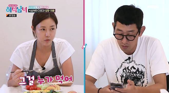 Kim Chang-yeol recalled his first meeting with his wife Jang Chae-hee. mbn's "Interpretive Men and Women with Different Apps" (hereinafter referred to as "Interpretive Men and Women"), which aired on the 2nd, depicted the dramatic and dramatic daily lives of couple Kim Chang-yeol and Jang Chae-hee. On that day, Kim Chang-yeol said of his wife, "She's a smart person. She always says what she wants to say. Nagging is bad." Jang Chae-hee said, "In a word, I'm very sociable. The downside is that I'm out of temper. There are a lot of different personalities." Jang Chae-hee, who woke up in the morning, removed the mysterious packaging container, explaining, "When my husband comes home from drinking, he always packs delicious snacks." Jang Chae-hee explained, "I used to try to eat with them. But I waited for them and they didn't eat much. I think we fought a few times over that, too. That's why I eat breakfast autonomously." Photo=mbn broadcast screen